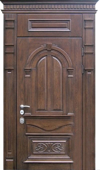 Входные двери. Они сочетают металлический каркас с массивной отделкой, обеспечивая надежную защиту от взлома, а также отличные тепло- и шумоизоляционные характеристики. Варианты массива позволяют добиться солидного и эстетичного внешнего вида, сочетающегося с любым фасадом.