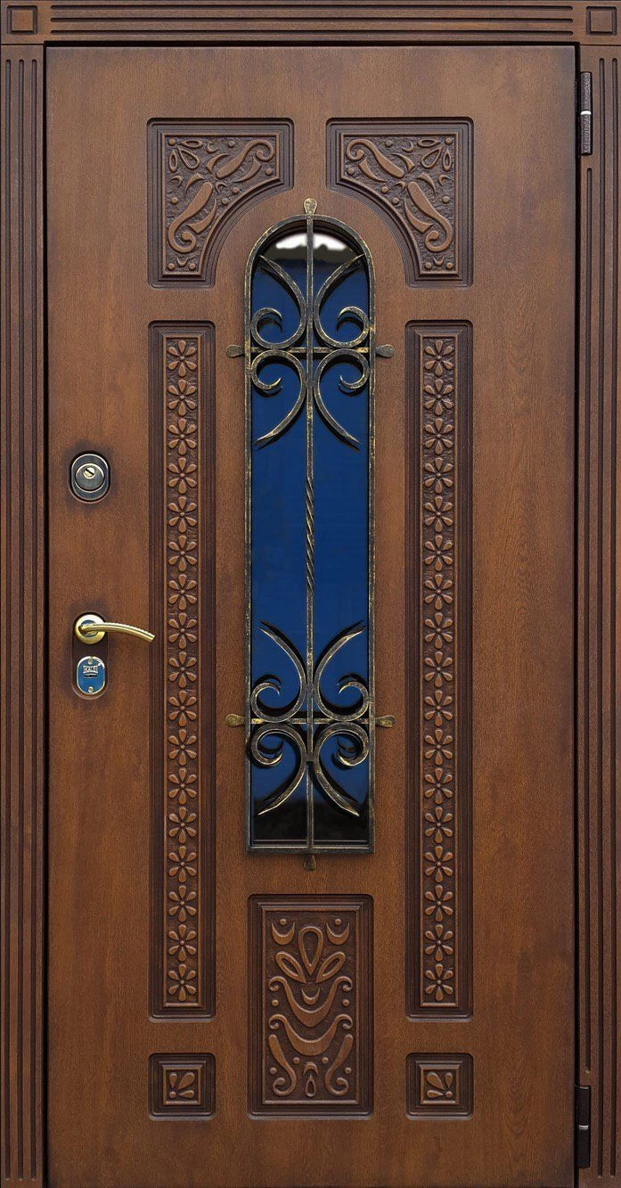 Входные двери в Пушкино с применением декора витражом изготавливаются из стального профиля, придающего прочность конструкции, а сама витражная вставка обладает высокой взломостойкостью, поскольку для витражных композиций используется специальное стекло, обработанное особым образом. Усилить надежность витражного элемента можно с помощью использования декоративных кованных решеток.